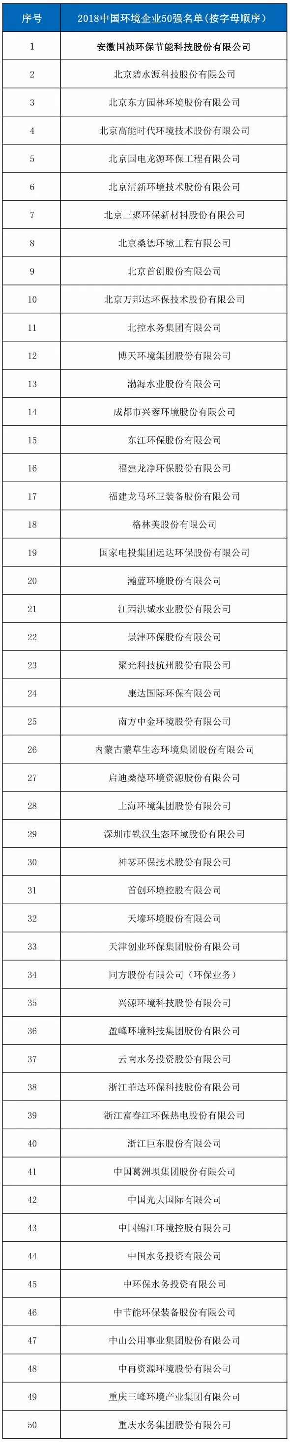榜上有名——國禎環(huán)保榮獲“中國環(huán)境企業(yè)50強(qiáng)”